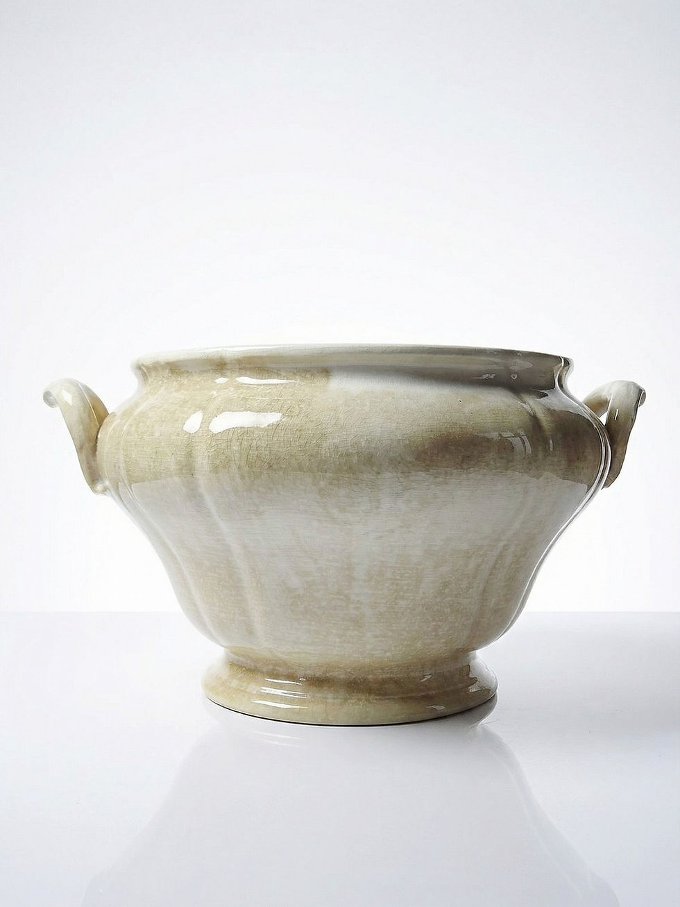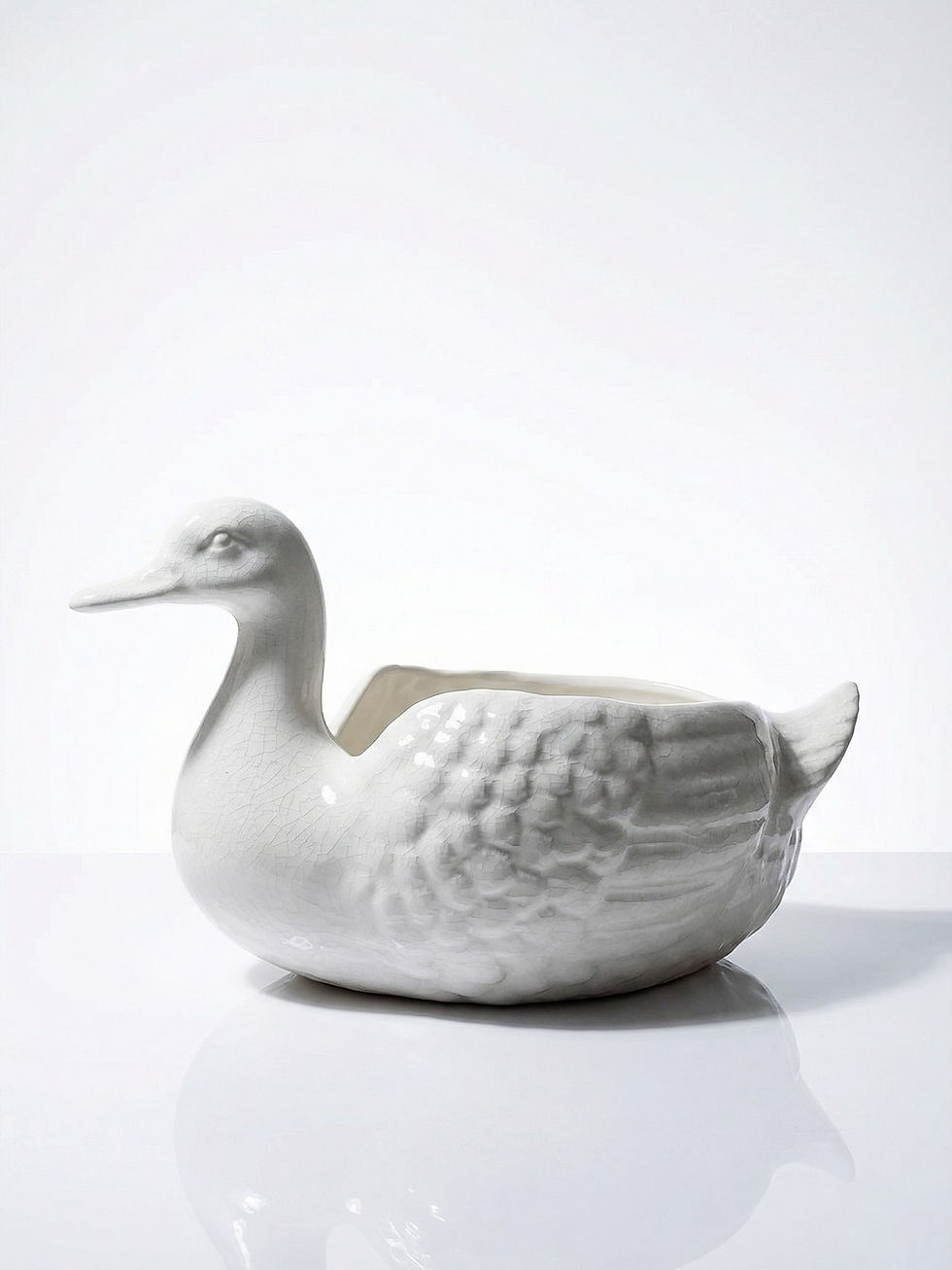 Cache pot/Coupe canard en faïence craquelée beige vintage