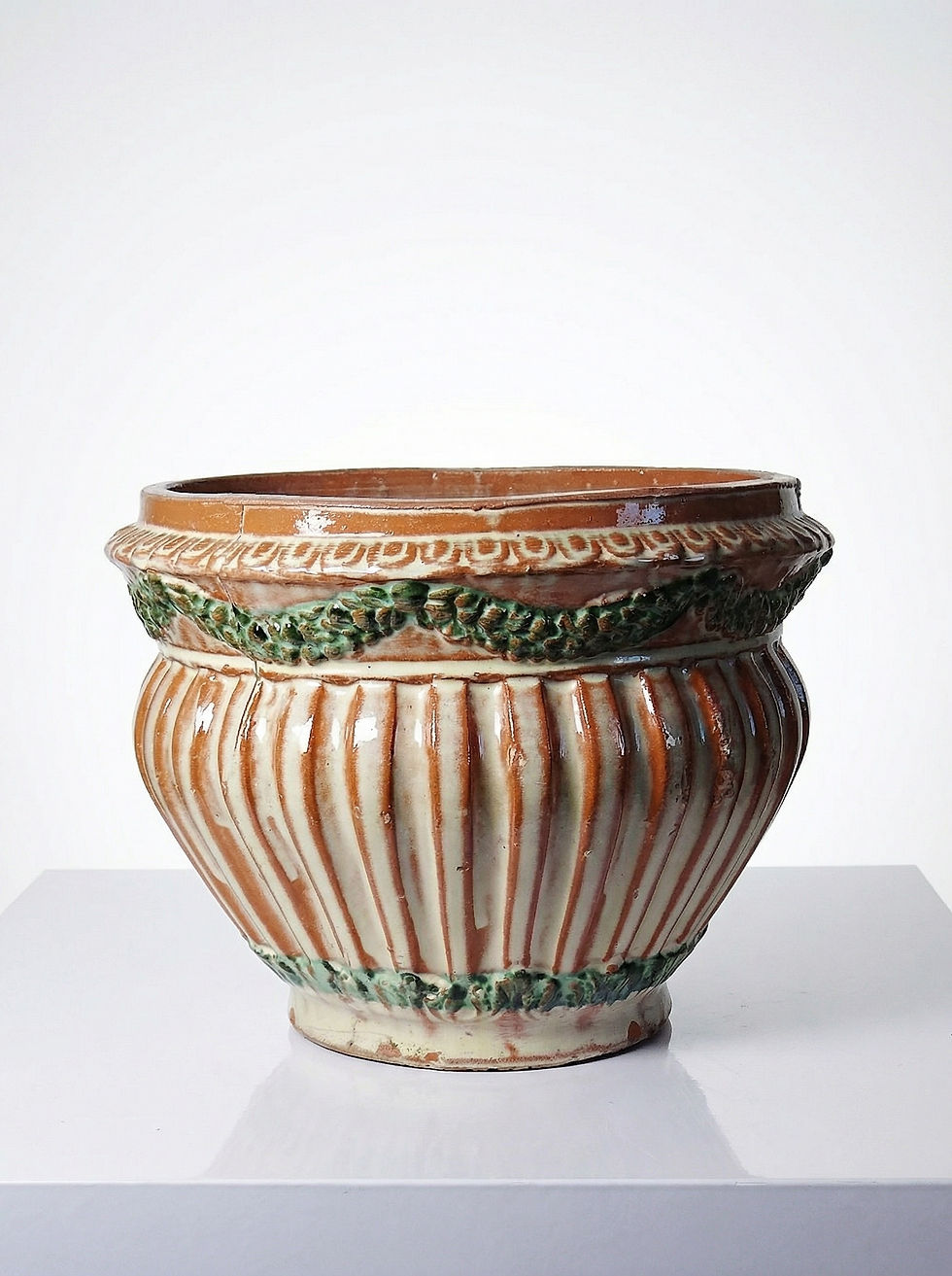 Grand pot planteur terre cuite vernissé décor végétal XXe Sud de la France