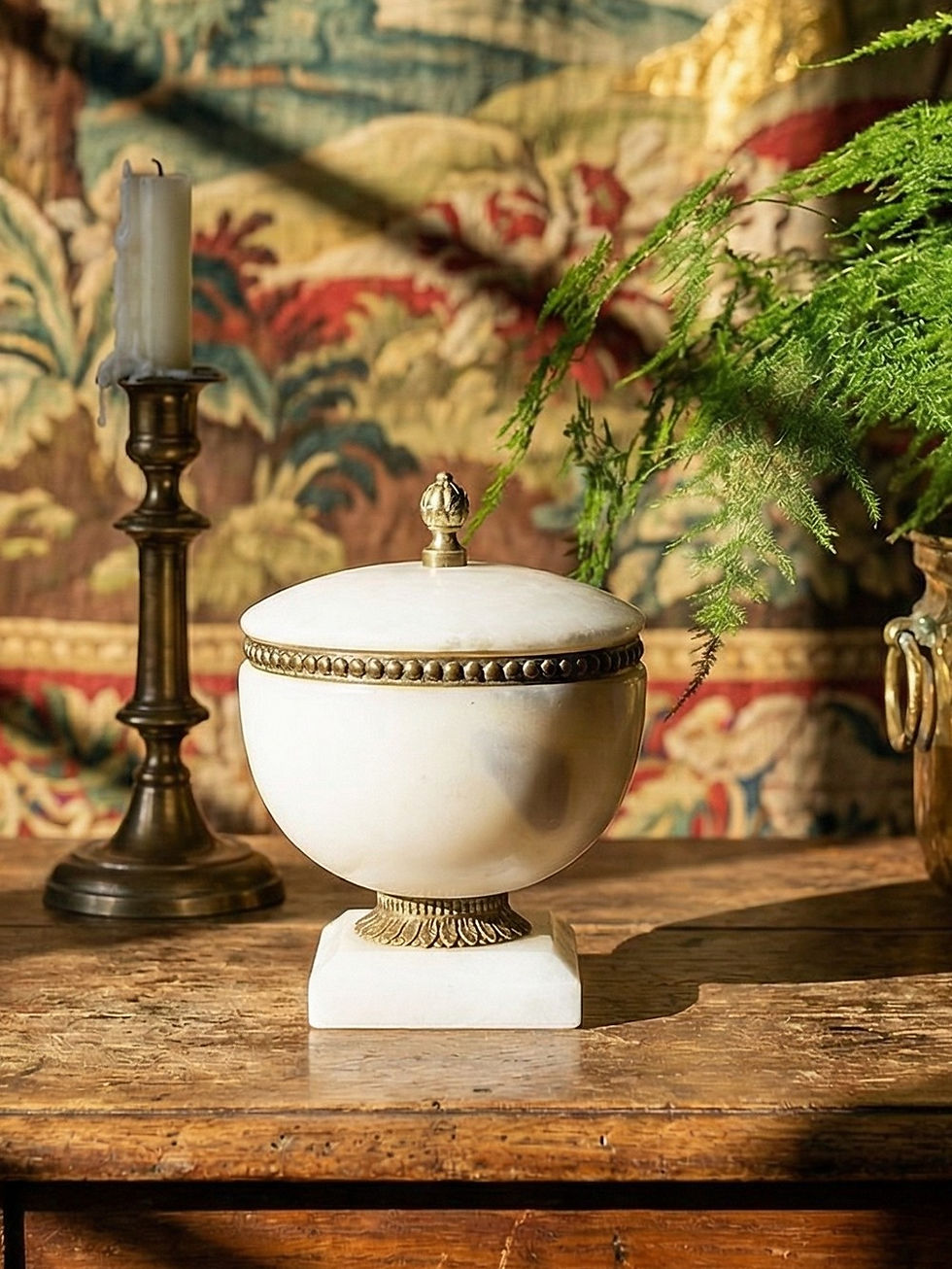 Bonbonnière albâtre blanc et bronze style Empire, circa 1900-1930