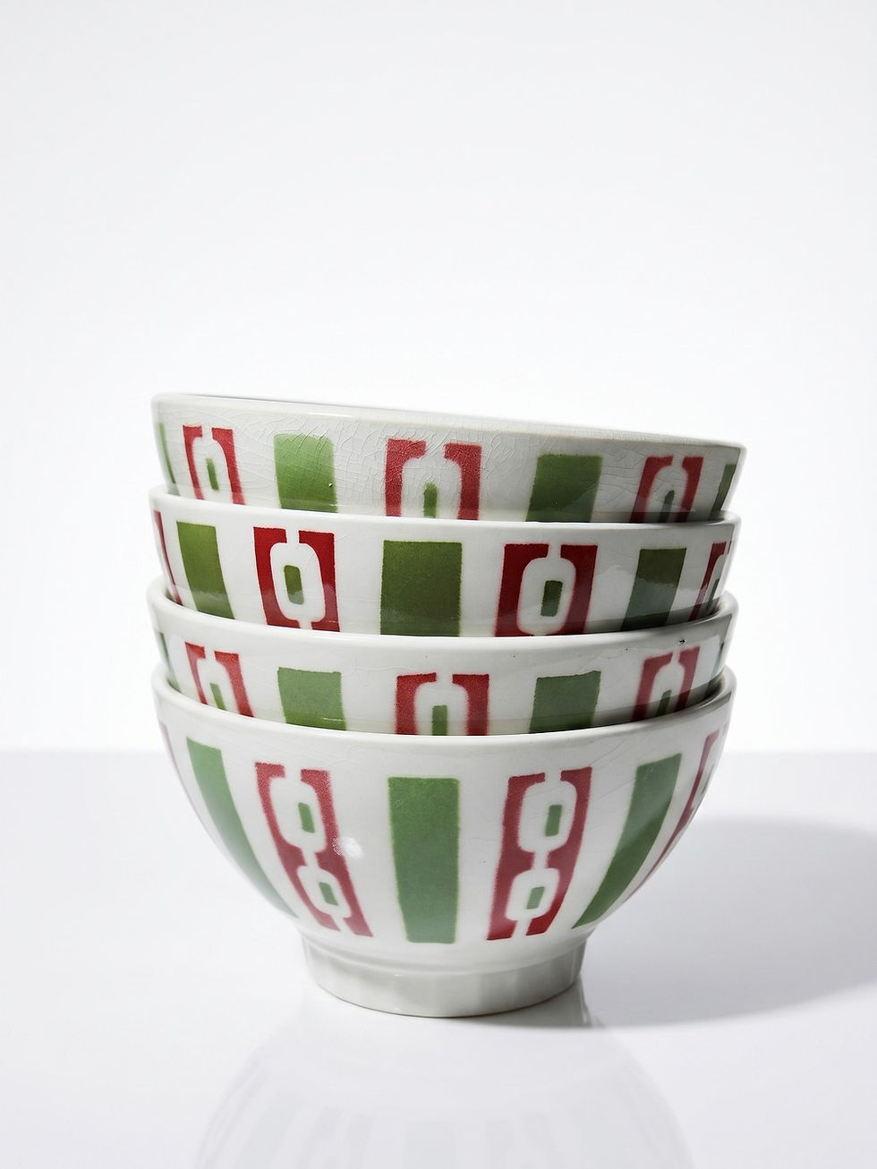 4 bols à café faïence de Badonviller décor Art Déco vintages années 1940-1950